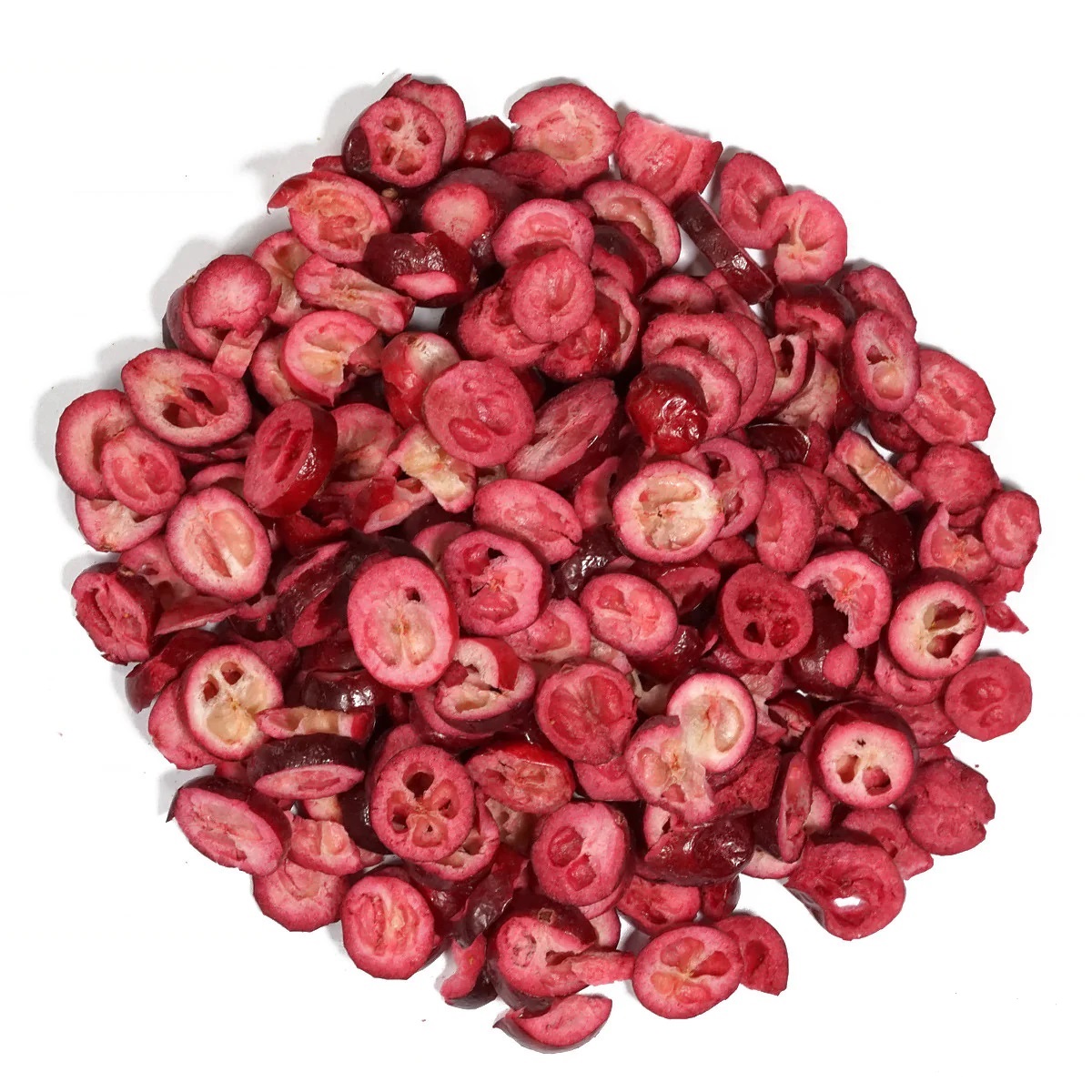 Freeze Dried CRANBERRY slices come packaged in a plastic bag and a cartoon. Perfect healthy ingredient for any bakery or confectionery. 100% natural Nothing added.